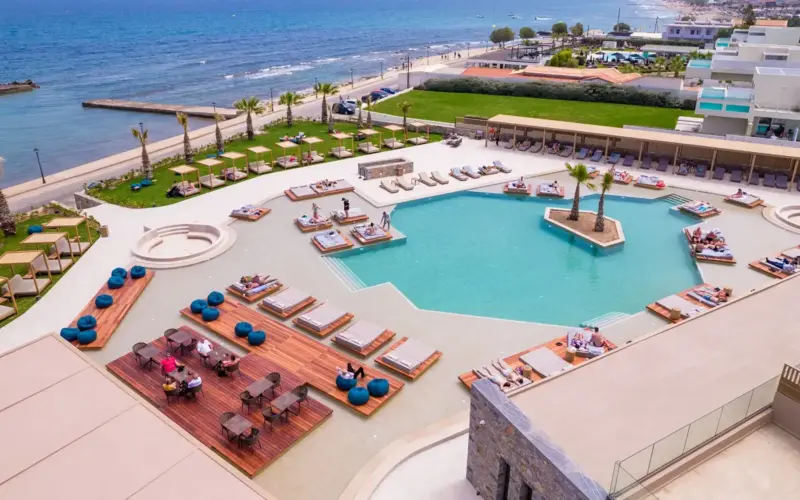 Raj za odrasle in otroke z brezplačnimi senčniki in ležalniki ob bazenu in na plaži. Brezplačne kopalne brisače.